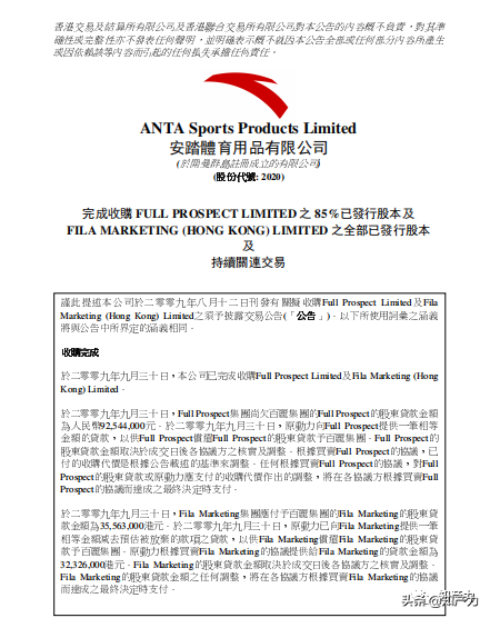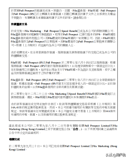 有趣的是,不到两年,安踏就宣布以约6亿港元收购百丽国际手中斐乐在中国的商标使用权和专营权,拥有Full Prospect85%的股权(另外15%的股份仍由斐乐韩国持有)和FILA Marketing的100%股权。