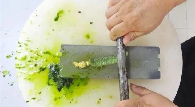 擀虫人先将一条条青色的虫子浸泡在水盆中洗净,好好给他们来一个“最后的spa”。