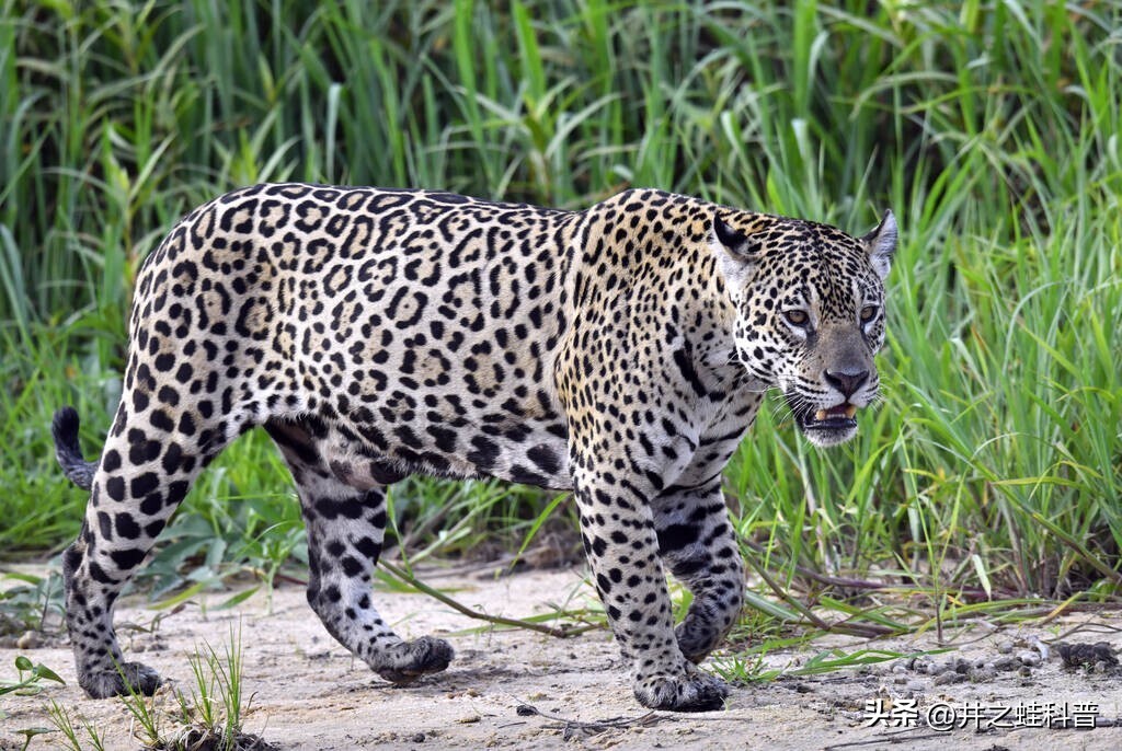 美洲豹,又叫美洲虎,体型仅次于狮子、老虎,是地球上现存的第三大猫科动物,体重达35-150千克,咬合力达到了惊人的1250磅,身上的花纹比较像豹,但身体的形状又更接近于虎,更像是虎与豹的完美结合体,也被人们称为“雨林之王”,是南美洲雨林的霸主。美洲豹站在南美洲食物链的顶端,食物广泛,包括鱼类、猴类、鳄鱼等等,偶尔也会捕食体型庞大的森蚺。