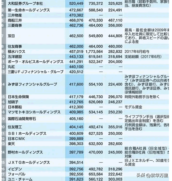 在日本的职场上,有一个非常有意思的情况,那就是论资排辈。老带新属于日本各个企业的传统,新人一般称呼老员工为“前辈。”在各种日本影视剧中,类似的情况比比皆是。作者查阅了日本100多家各领域企业的工资和待遇,发现年薪800万日元(大约折合39.8万人民币),属于日本上班族的天花板,绝大多数上班族无法超越这个标准。