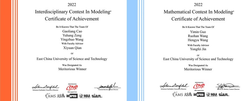 5月,2022年美国大学生数学建模竞赛结果公布,华东理工大学学子喜获佳绩,有2支参赛团队获得一等奖(Meritorious Winner),有6支参赛团队获得二等奖(Honorable Mention)。