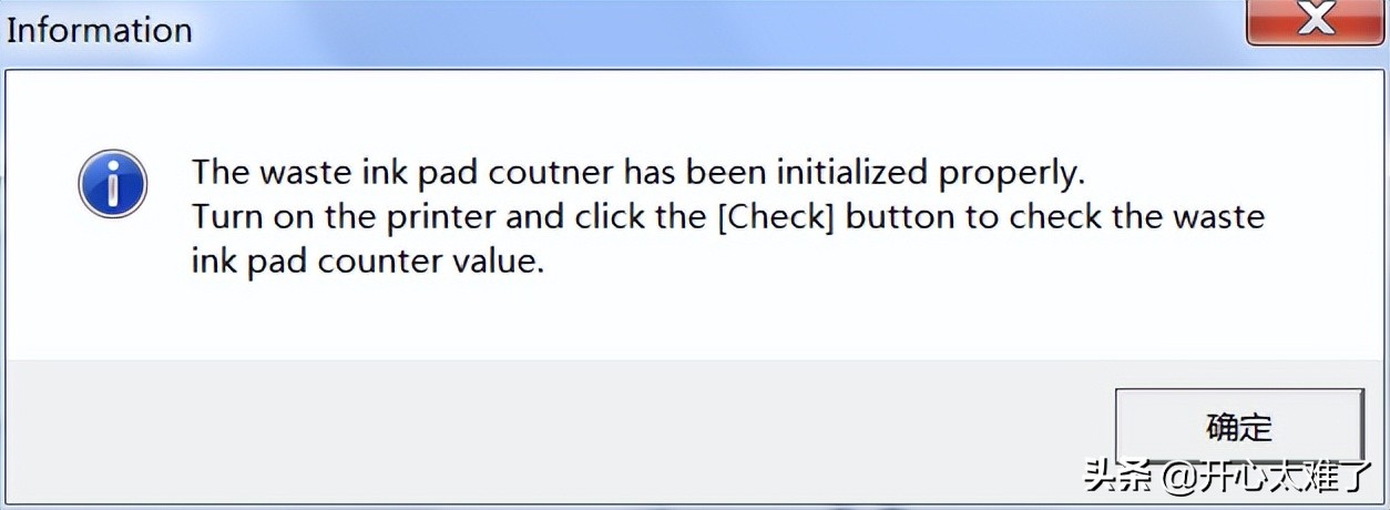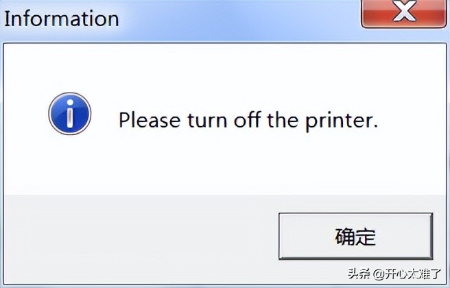 进度条跑完,出现这个,关闭打印机,点击“确定”。重新打开打印机。清零就成功了。