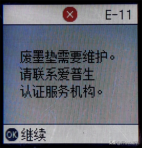 打印机的部件已到使用寿命和废墨垫需要维护。有的打印机可能提示信息不一样,但是意思差不多。