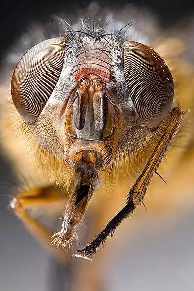 昆虫的眼大多是复眼(ommateum)。复眼有上千只单眼(ommatidium)组成。每只小眼会独立成像,总体合成一副网格样的全像。很多昆虫此外还会有两到三只单眼(ocellus),它们的作用并非成像,而是通过光调节自身作息生物节律。另外昆虫的视觉对紫外线敏感,但它们并不能看到红光。