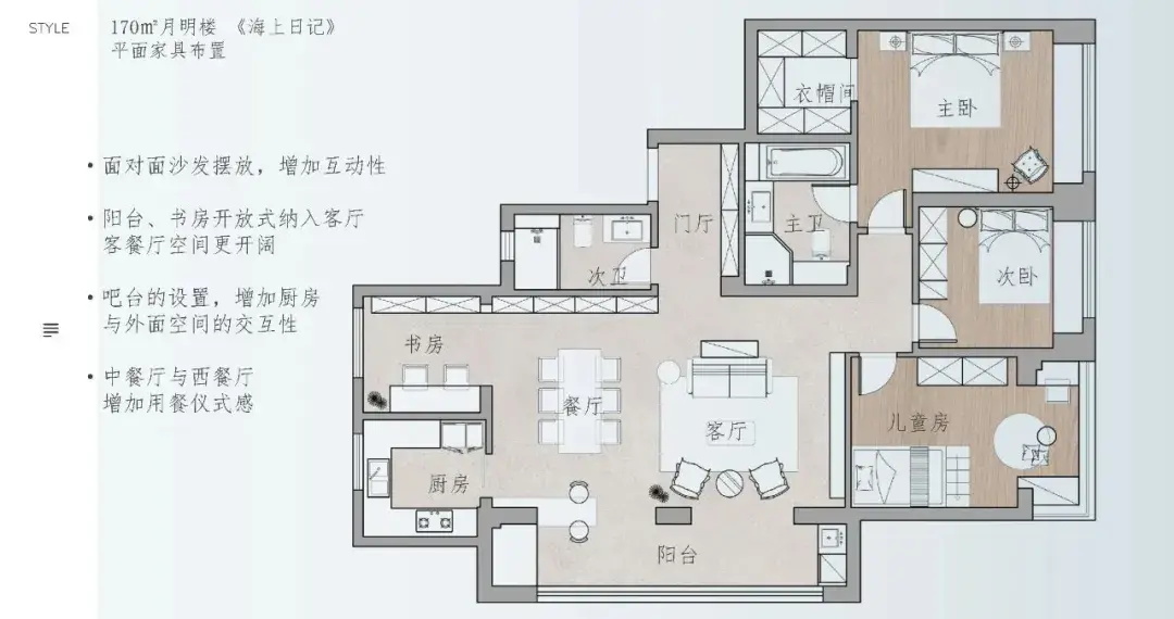 本案取名为《海上日记》,是希望我们精心打造的家就是他们生活的日记本,把幸福和快乐的瞬间融化在每一处空间里,记录过去,憧憬未来。