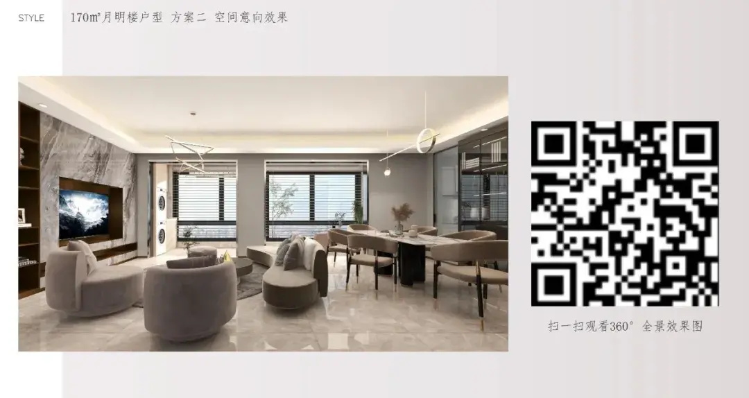 下面是基于这一稿方案做的一个客餐厅效果,大家可以扫一扫看下全景效果图。