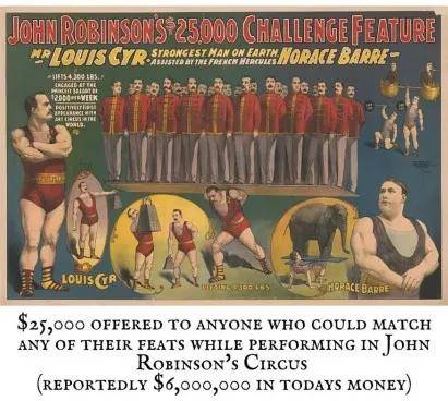 19世纪末的时候,法国有一个超级大力神路易斯·希尔,他有多厉害呢?他曾经和徒弟两人用单手臂提起坐满12人(加平台超过1100公斤)的平台,更夸张的是,他一人通过平台背负起了4300磅(1950公斤)的重量,负重之强简直令人窒息。为了纪念他,之后的阿诺德大力士赛的奖杯便是此人的雕像。相比之下,项羽600斤的力量并不算大。