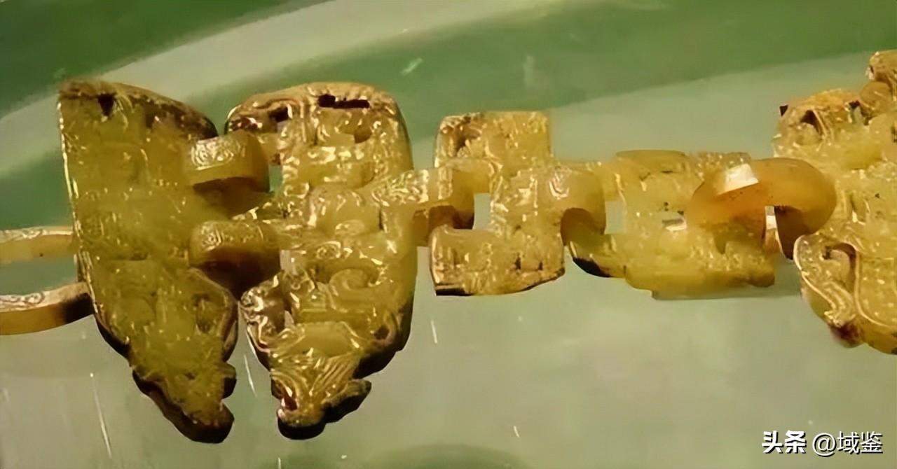 此串玉佩是目前面世的器形最长、活环套链最多、纹饰最繁复精美、工艺最为精湛的活环套链玉。