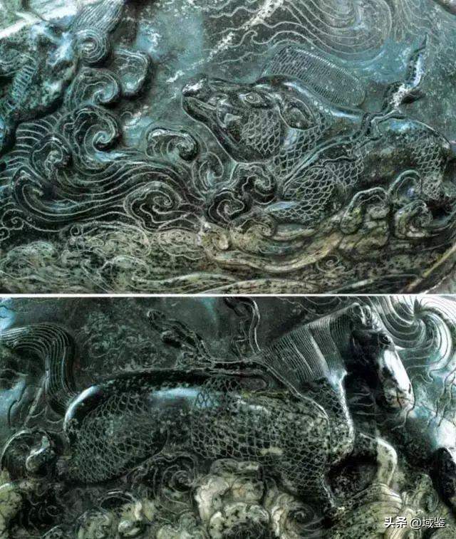 《大禹治水图》玉山成品于十八世纪清朝乾隆时期。高224厘米,宽96厘米,重约5000公斤,是用最为名贵的密勒塔山和田(旧称和阗)玉雕成,为致密坚硬的青玉。