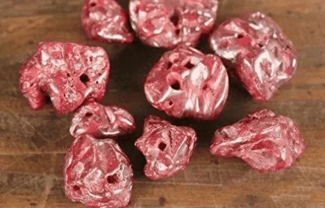 市面上大部分朱砂,纯度在50%以下,甚至不足20%,其他就是混合物了,至于是什么,胶水、塑料、朱砂粉末等都有可能,没什么价值,还因胶水不安全而可能危害健康,也不要买。