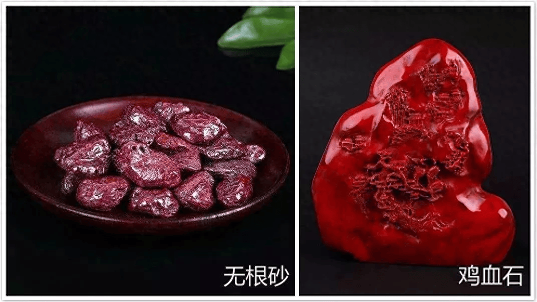 在朱砂原矿里,有无根砂、鸡血石,它们有稀有的颜色或形态,纯度也高,只要简单的打磨,就可以很美丽,在市面上十分受欢迎,值得收藏。