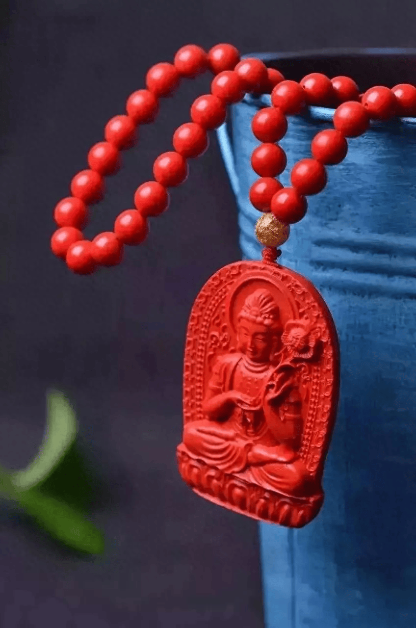 从文化上说,道教用朱砂画符驱邪,佛教也用它。将朱砂放在阴气重、负能量的地方,可以辟邪。将朱砂戴在身上,则可以祈福镇煞。