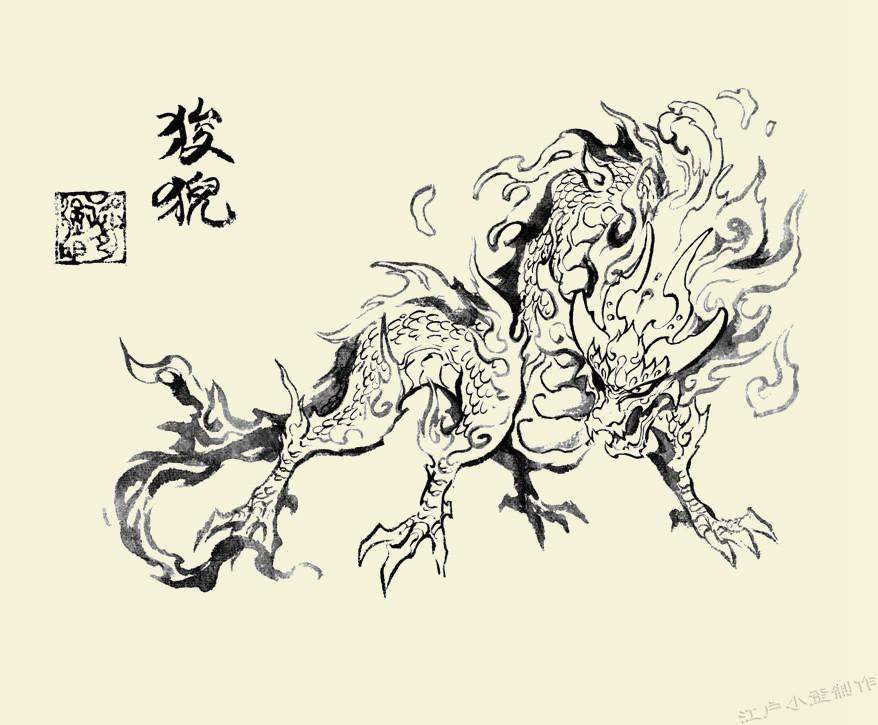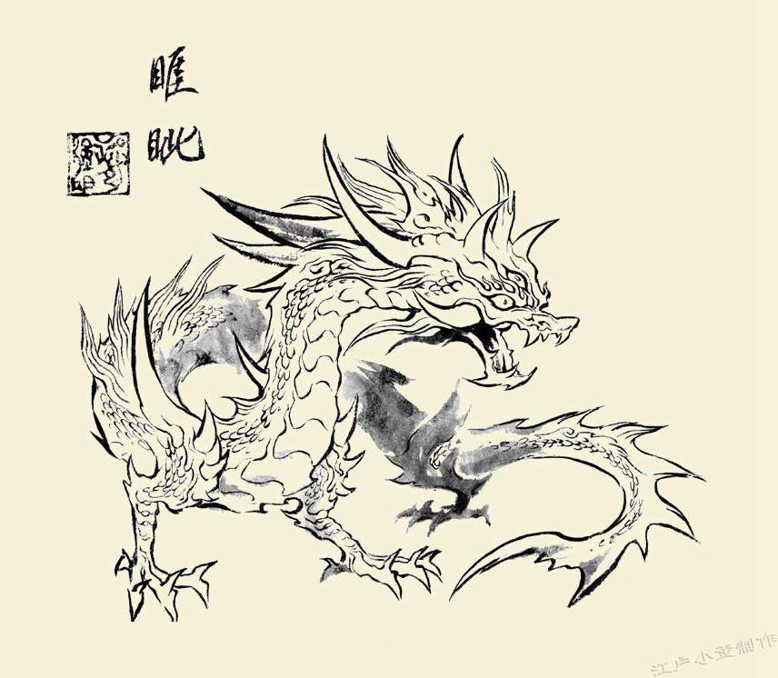 龙与豺狼结合,生了睚眦,睚眦具备战斗精神,喜欢厮杀。