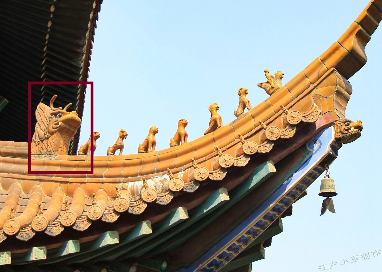 嘲风有个弟弟叫狻猊,也混在前面的走兽队伍里,懂古文化的朋友不妨找找是哪一个。