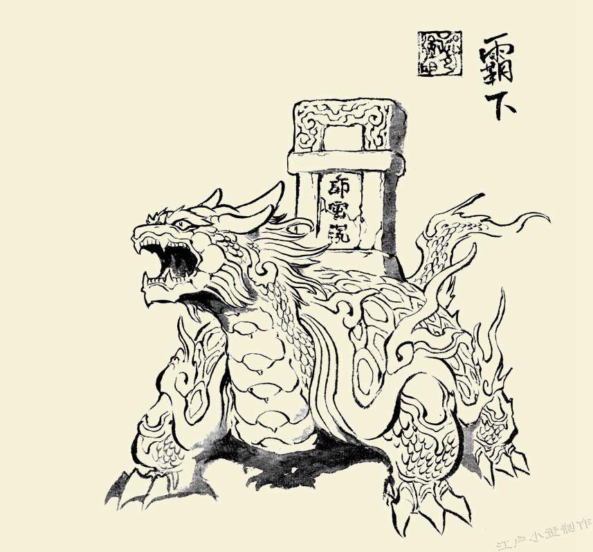 下回出门看到石碑别说不认识他们,霸下和负屃,一个在下,一个在上。
