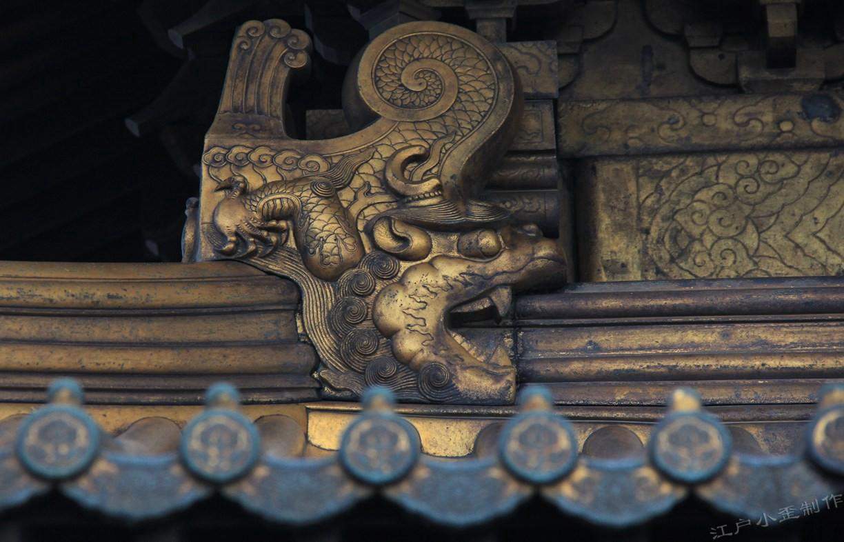 又因说他爱吞吃,所以就拿屋脊给他吞。武当山云上金殿,就有漂亮的鸱吻在吞屋脊。