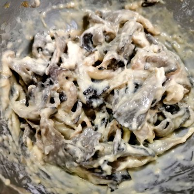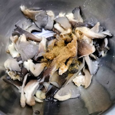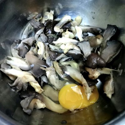 蘑菇 适量 鸡蛋 1 水 适量 食用油 适量 盐 适量 十三香 适量 面粉 适量 孜然 个人口味