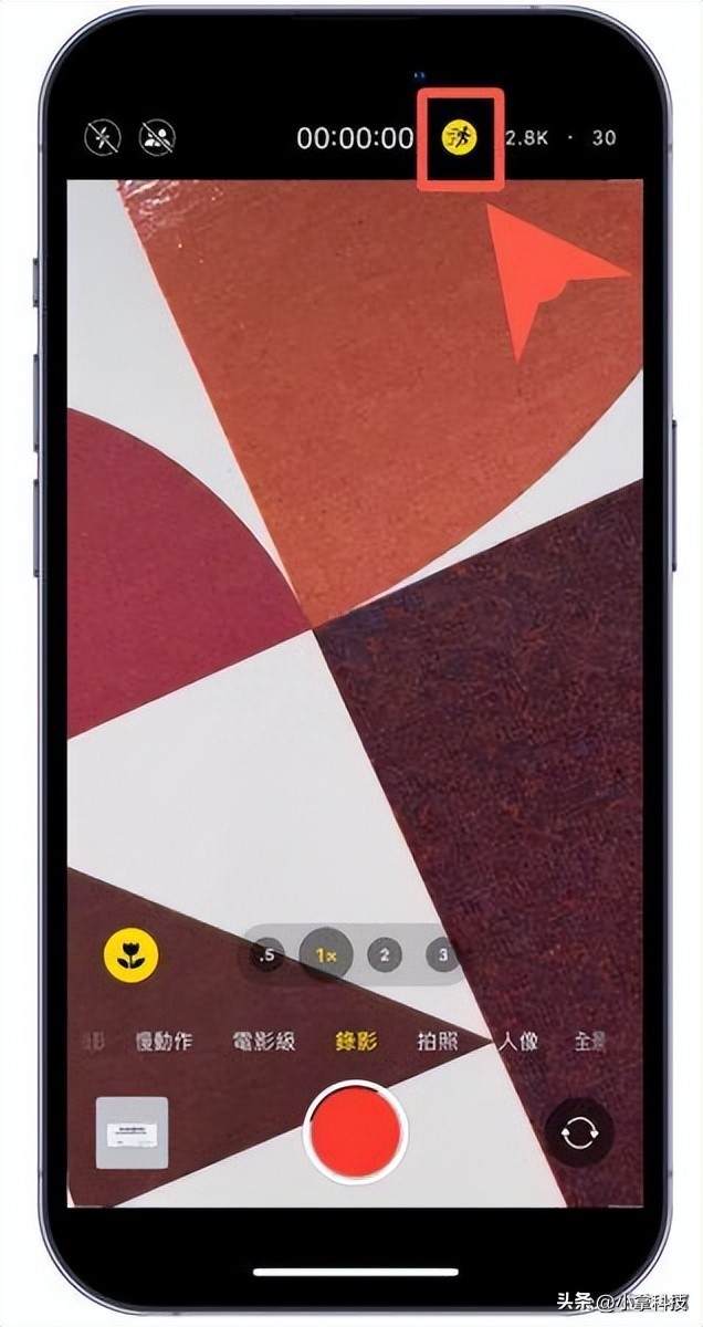 使用方法也比较简单,打开iPhone 14「相机APP」,切换到录影模式后,点击上方「动作模式」图标,就能开启 iPhone 14动作模式拍摄。