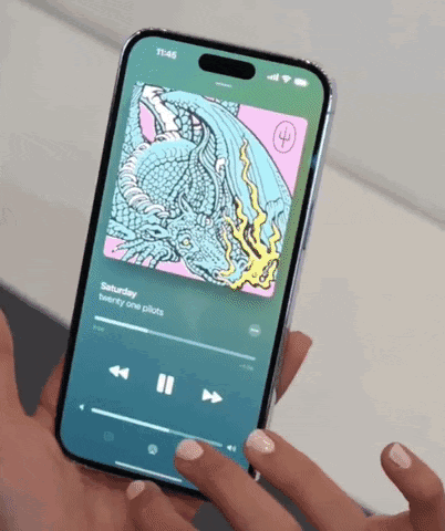 以苹果内置音乐App 为例,开启音乐App 后,动态岛并不会有什么太大的变化,但是当你把音乐App 往上滑,动态岛就会变成音乐App的使用状态。