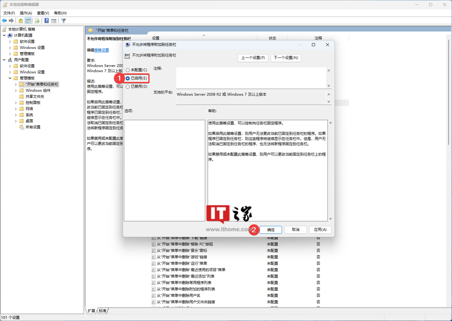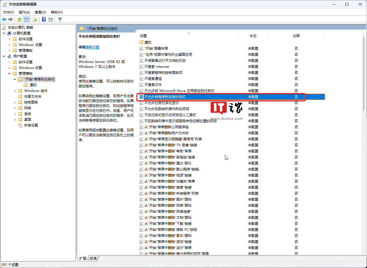 IT之家 12 月 22 日消息,如果你和他人共用一台电脑,且不希望他们将某些应用固定在任务栏上,那么你可以根据本文来取消这项功能。本期 Win11 学院介绍如何启用 / 禁用“固定到任务栏”和“从任务栏取消固定”选项,用户可以通过本地组策略和注册表两种方式进行修改。