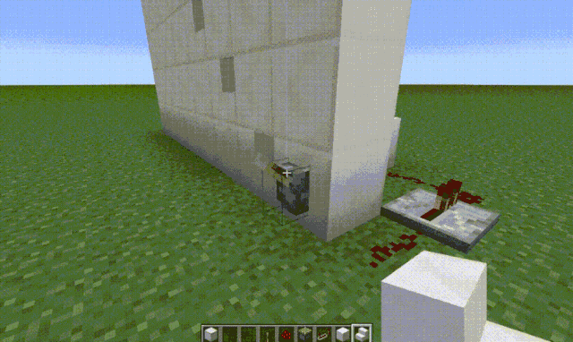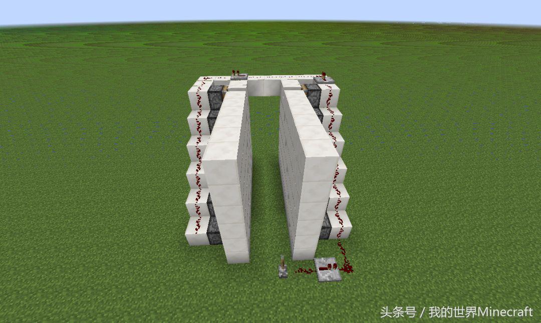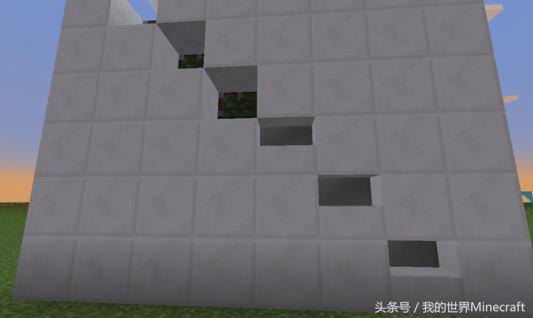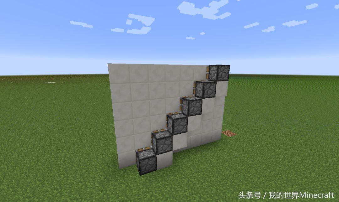 在每个“墙洞”的后面放置一个粘性活塞,这是用来牵引楼梯的,注意活塞的朝向要向着放置楼梯的一面。