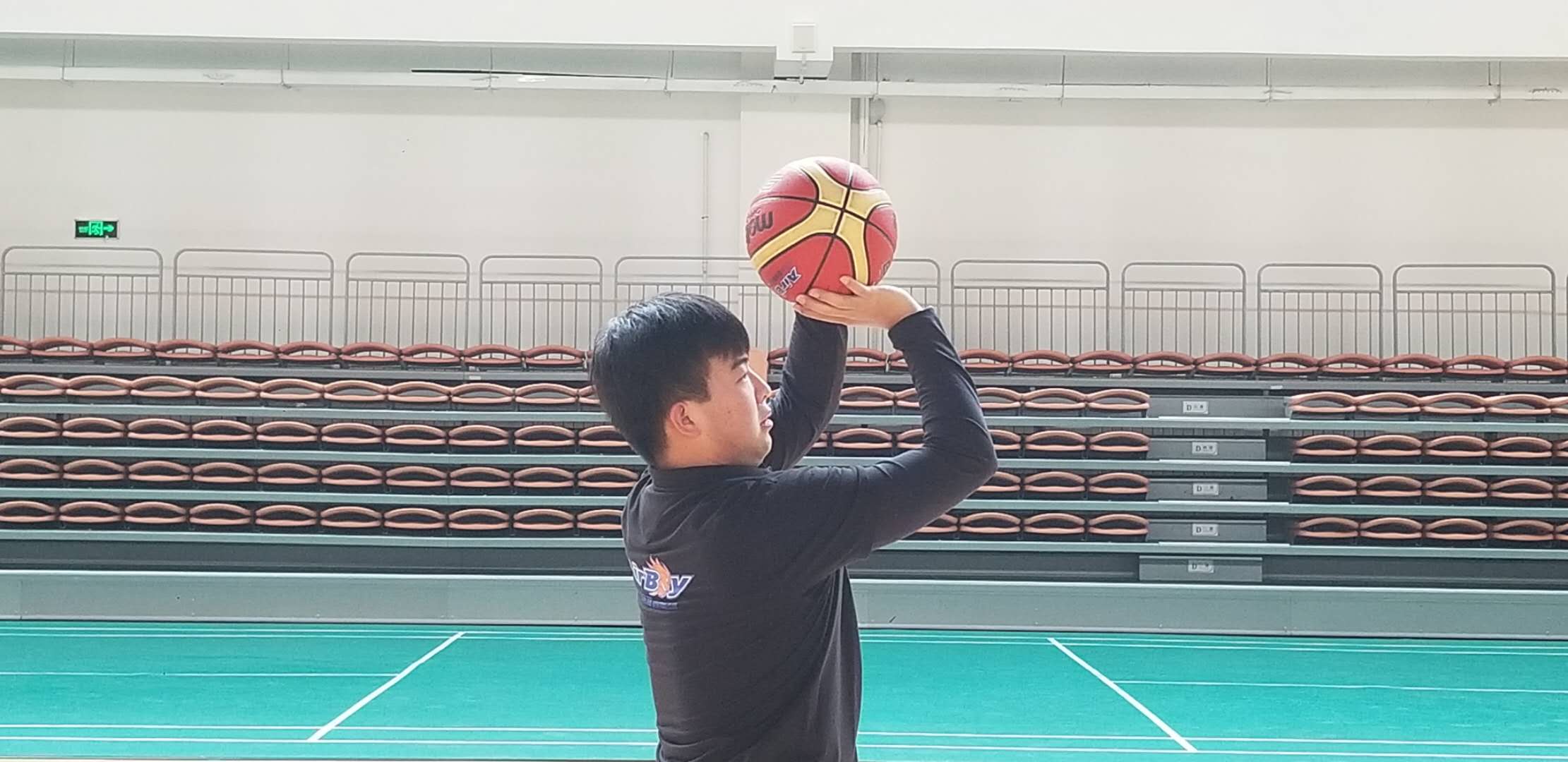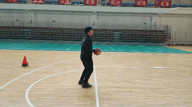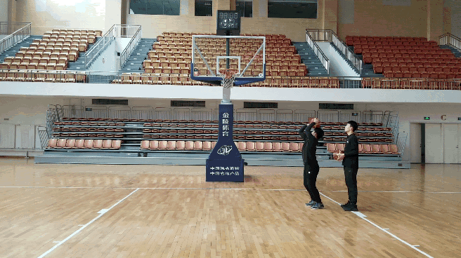 动作要领:身体保持投篮姿势,身体要与篮板呈45°角,同时也是我们球出手后的线路与篮板的角度,大家要注意球打篮板的位置。