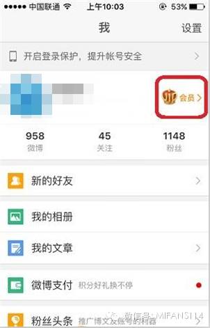 1、我们打开手机微博,点击右下角“我的”,再点击微博名后面的“会员”。