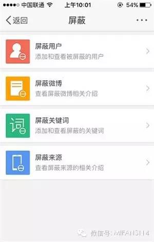 3、在这里,你可以屏蔽不想看到的用户或微博,甚至可以设置屏蔽某个词。