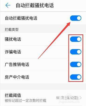6、一过滤骚扰电话 1进入电话 四个点 骚扰拦截 齿轮按钮您也可以进入 手机管家 骚扰拦截 齿轮按钮2点击电话拦截规则,开启需要的拦截规则开关二阻止特定用户的来电 通过以下任一方式阻止特定用户的来。