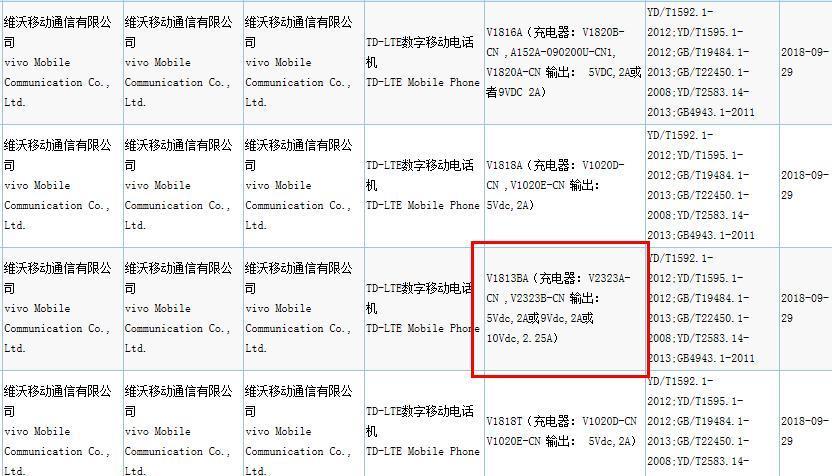 在国家3C认证中心V1813BA同样现身了,页面显示它由维沃移动通信有限公司生产,标配V2323A-CN的充电头,最大支持10/2.25A的充电功率,也就是22.5W,它将成vivo继NEX、X23之后,第三部用上该充电功率的手机
