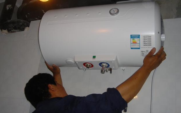 对准热水器后面的挂钩,挂上就行了,一个人操作足矣。