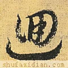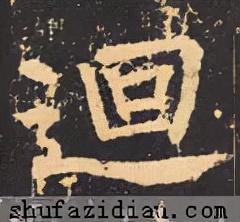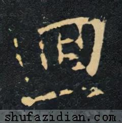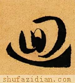 右上部“回”字斜势抗肩,不要写宽。外面“口”上宽下窄:左竖斜切起笔,注意位置,向下稍右斜,渐轻;横折实接起笔,横画抗肩,略呈俯势,到位后向右下稍重顿笔、略内擫写竖,左斜,厚重,稍长;再写里面“口”字,不要写大、写重,注意留白匀停。最后底横实接起笔,抗肩,略呈俯势,勿重,收笔实接右竖。