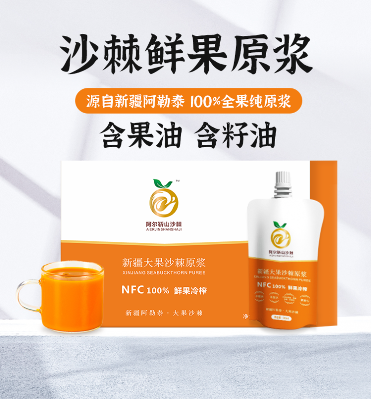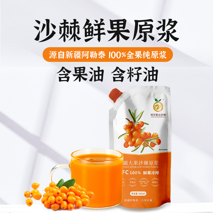 我们的沙棘原浆属于NFC非浓缩还原果汁,由新鲜原果清洗后冷压出果汁,经瞬间杀菌后直接灌装(不经过浓缩及复原),完全保留了大果沙棘原有的新鲜风味。适用于各类人群,是送家人、朋友的理想健康饮品。