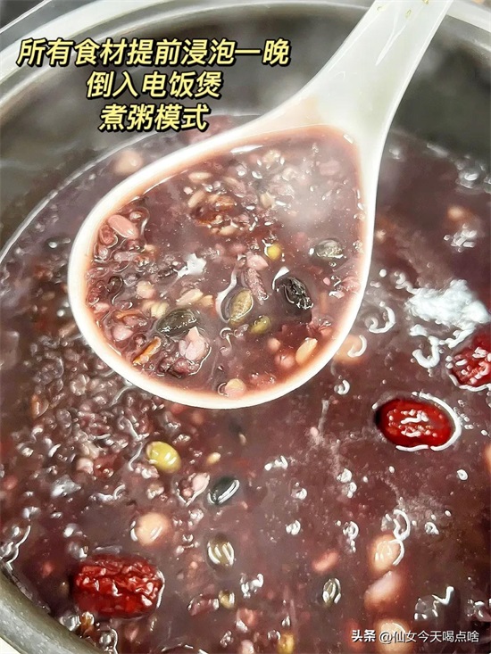 腊八粥软糯好吃,就要将食材提前浸泡一晚上,时间来不及,也至少要浸泡2小时,最后倒入电饭锅中,加入足量的水,焖煮90分钟以上。