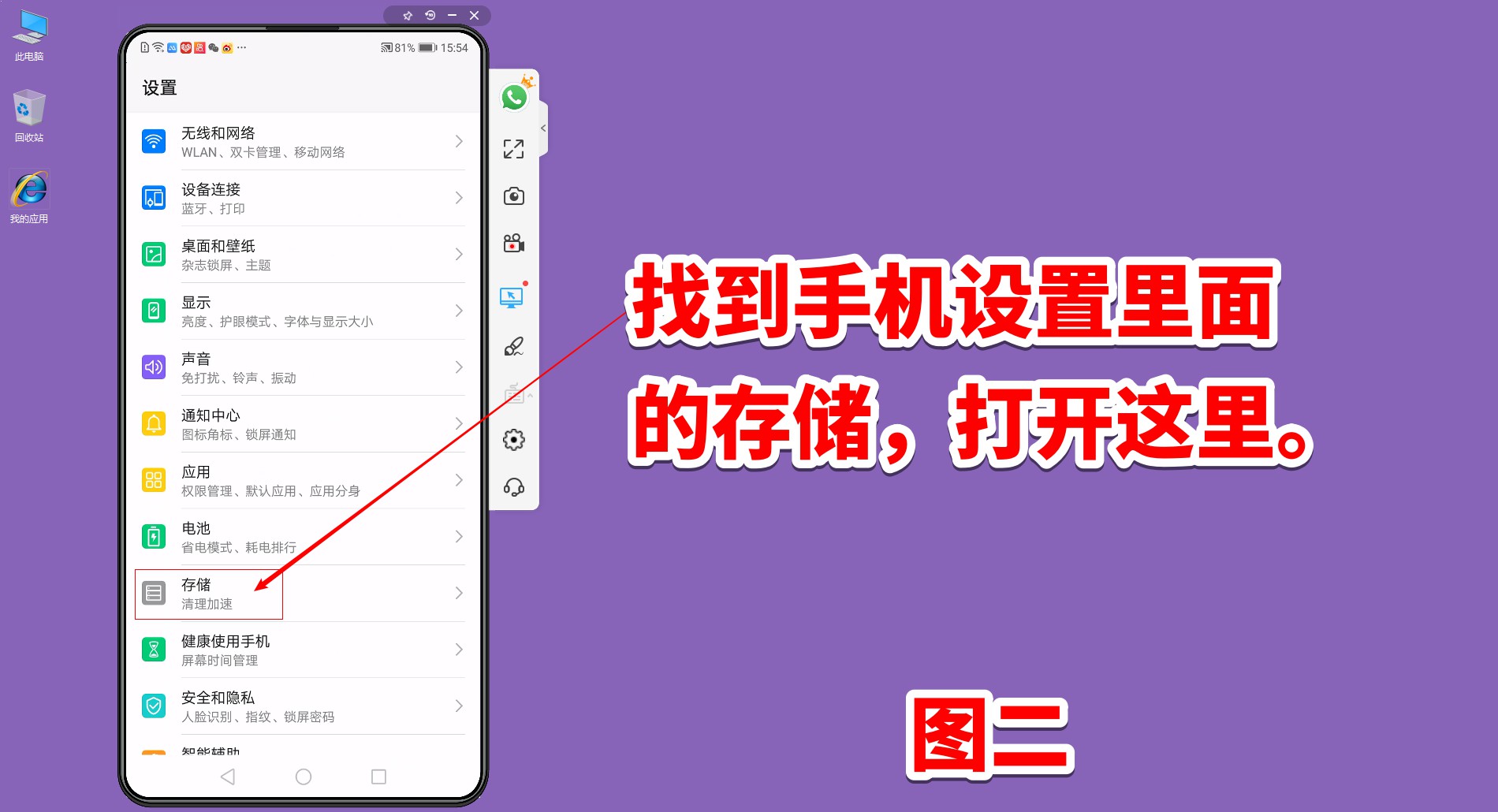 然后找到手机设置里面的存储,打开这里,具体看图二。