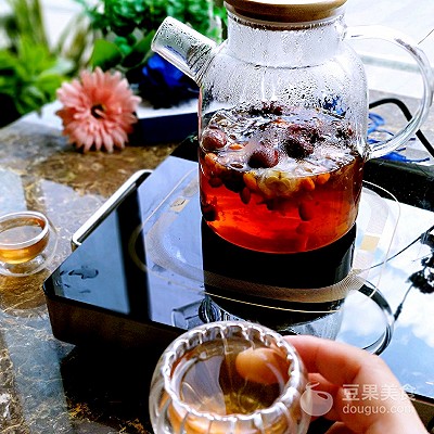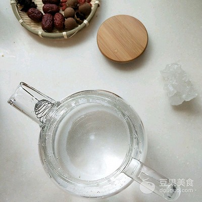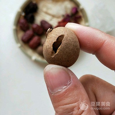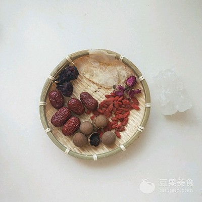 玫瑰花 3朵 灰枣 5颗 枸杞子 15粒 水 900g 玉蝴蝶 3片 桂圆 5颗 玫瑰茄 2个 冰糖 1块