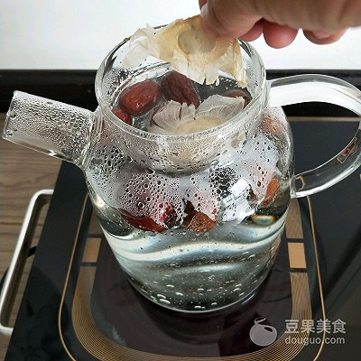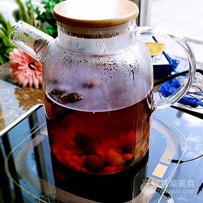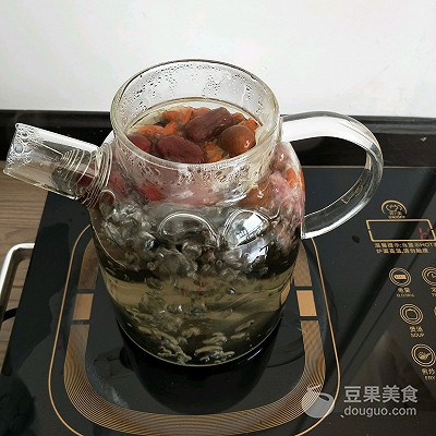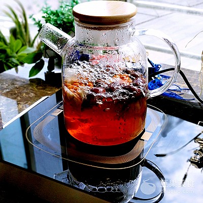 这款茶也可以将全部材料洗净,用热水直接浸泡,但煮一下功效会发挥得更好!我用的是耐高温的无铝耐热玻璃水壶,升级加厚材质,耐热防爆玻璃,承受-25℃-150℃.盖子不怕掉下来,把手不会烫!