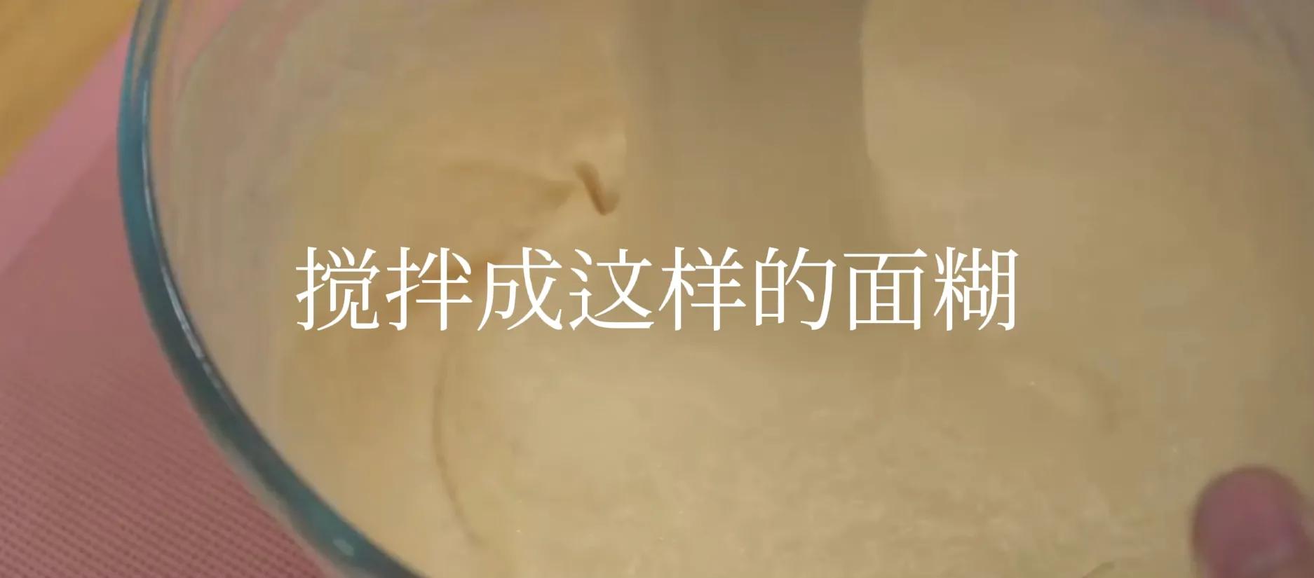 4:接着把面糊倒入一个高杯子中,这样子会方便我们把热狗放进去,接着把做好的芝士热狗浸入面糊杯中。