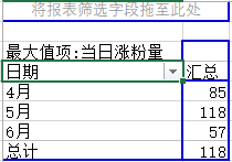 如图,以公众号每日涨粉量数据为例,生成数据透视表