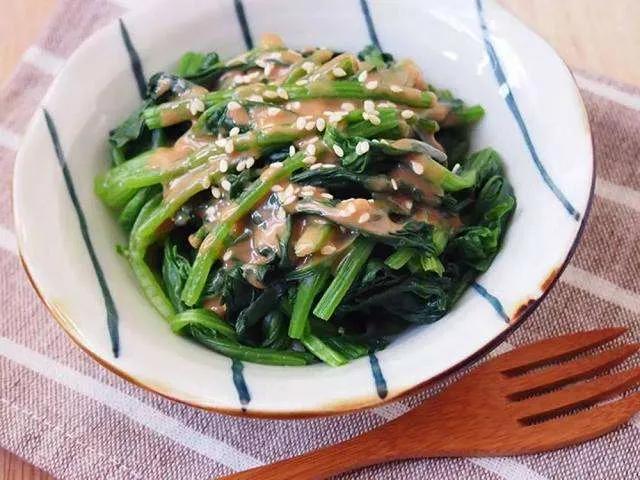 【制法】1.将麻酱、葱末、姜末、蒜泥、精盐、味精、香油、醋一同放碗内搅匀,兑成调味汁;选择小而均匀的菠菜择去老叶,切根洗净。