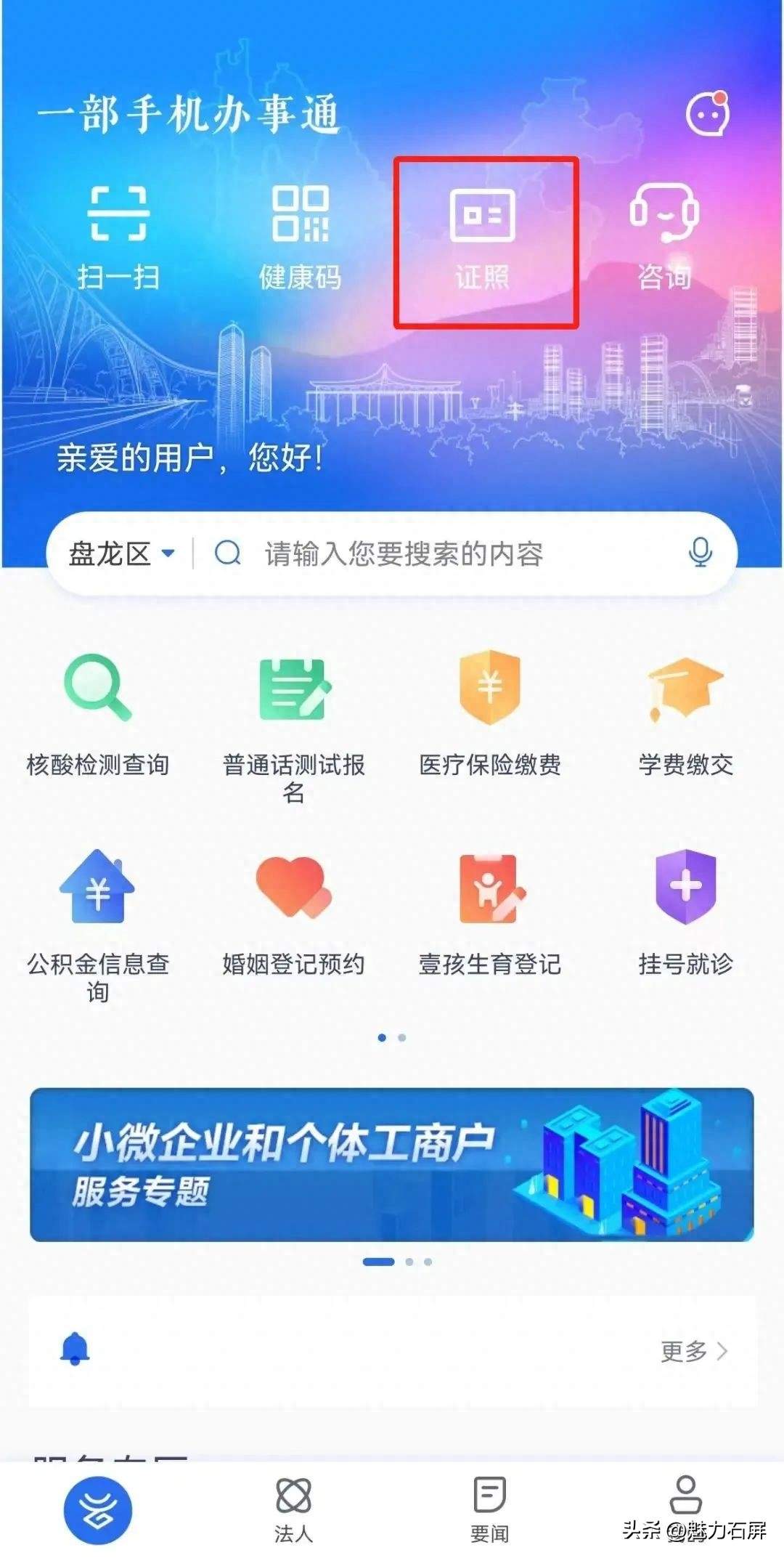 1.登录“一部手机办事通”App,点击“证照”进入“我的证件”页面,找到电子社保卡点击“立即查看”。