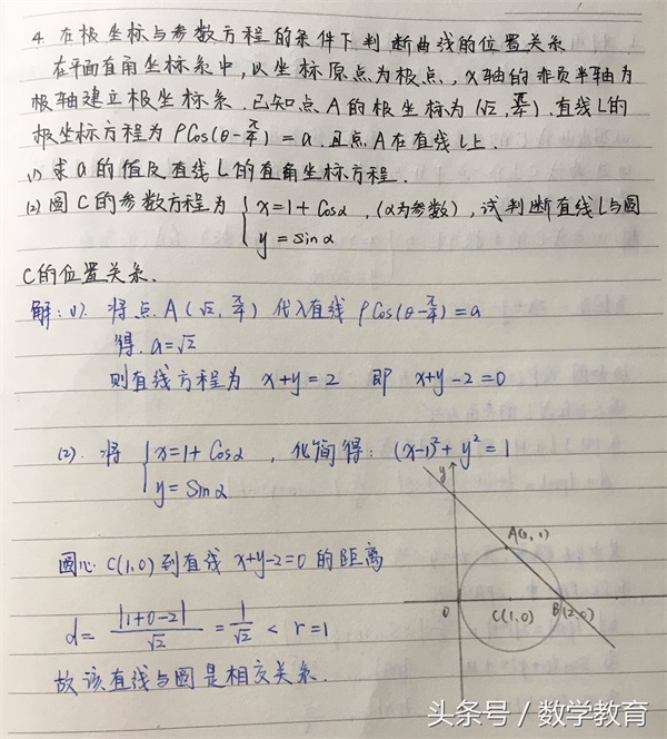极坐标参数方程题目和解析 极坐标与参数方程教学视频