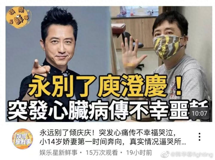 庾澄庆被传心脏病死亡 经纪人辟谣(本人发骑车视频自证)