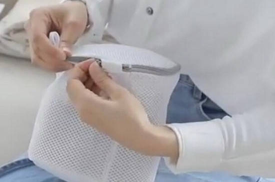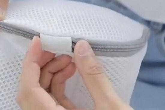 使用内衣袋时,先将内衣折叠放好,再将内衣放入专门的内衣袋中,拉好内衣袋上方的拉链,能够防止内衣变形,起到保护内衣的作用。接着将内衣袋的拉锁头放入内衣袋专用的收纳位置,可以避免刮坏衣物,最后放入洗衣机清洗即可。