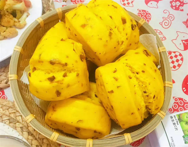 南瓜馒头:南瓜蒸馒头也是特别好吃的馒头鸡蛋有,南瓜的香甜也带有面粉的香气。脂肪含量也特别低。把南瓜去皮切成薄片上锅蒸熟。放进料理机里面加入适量牛奶打成南瓜泥。把南瓜泥倒在盆子里面晾到温热,加入适量白糖干酵母,面粉搅拌成絮状,揉成面团,放在温暖的地方,醒发至两倍大,然后揉匀排气做成馒头上锅蒸10分钟。馒头蒸熟以后关火闷5分钟再打开盖子。好吃的南瓜馒头就做好了。