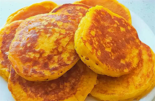 南瓜早餐饼:香香甜甜的特别好吃。把南瓜去皮切成薄片上锅蒸熟,装在一个大碗里,趁热捣烂成泥。能够练到不烫手的程度,加入适量牛奶,打入一个鸡蛋,再放上点儿干酵母。要不然均匀之后再加入适量面粉搅拌成酸奶状,放在一边醒发10分钟左右。如果喜欢吃甜一点的,可以再加上点白糖。电饼铛烧热以后刷上油,发好的南瓜糊到里面摊成饼。两面烙至金黄就可以吃香香甜甜的南瓜饼。