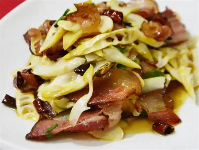 腊肉炒竹笋是南方人特别喜欢的一道菜,可以说是南方餐桌上的家常菜。准备适量腊肉切成薄片。竹笋改刀,切成丝或者片儿都可以。把新鲜的竹笋切好之后,用开水烫一下,蘸干水分,切一点干辣椒,适量葱花姜末,锅里面油热以后放进干辣椒和葱花,姜末爆香,放入腊肉翻炒几下,然后把竹笋加进去继续翻炒竹笋,炒蔫儿之后加入适量盐,鸡精,蚝油,调味即可出锅装盘。