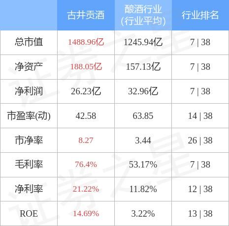 古井贡酒2022三季报显示,公司主营收入127.65亿元,同比上升26.35%;归母净利润26.23亿元,同比上升33.2%;扣非净利润25.78亿元,同比上升35.57%;其中2022年第三季度,公司单季度主营收入37.63亿元,同比上升21.58%;单季度归母净利润7.04亿元,同比上升19.27%;单季度扣非净利润6.89亿元,同比上升22.32%;负债率38.96%,投资收益-2152.25万元,财务费用-2.18亿元,毛利率76.4%。古井贡酒(000596)主营业务:白酒的生产和销售。。