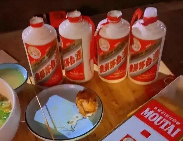 并不是因为他们点的菜有什么特别,而是他们三个带来的酒让人移不开目光:4瓶茅台酒,别看四瓶酒就占了桌子的一个角,这四瓶酒的价格不知道比这一桌子菜要贵了多少倍。