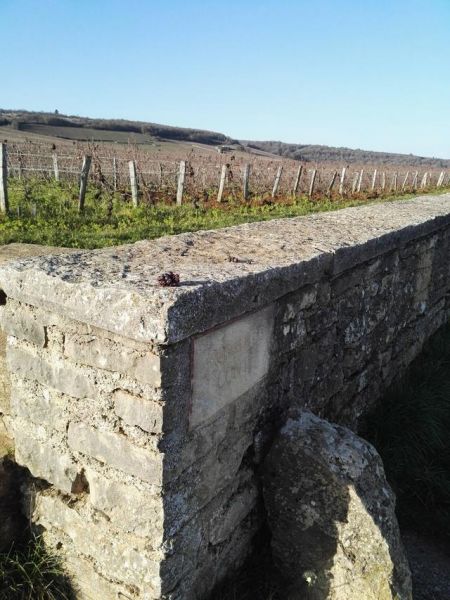 相比于其它的一级园,罗曼尼·康帝园算是最容易辨别的了,因为看了太多照片的缘故,离老远就能发现这个园子的标志性符号——一个十字架。罗曼尼·康帝园克罗矮墙上,也清晰地刻着“Romanée Conti”的字样。